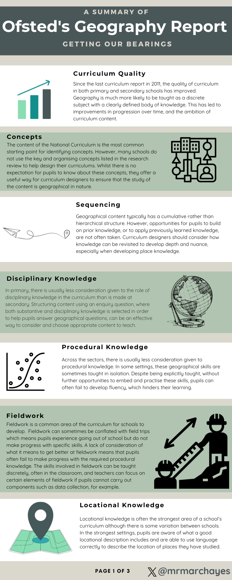A high-quality version of the visual summary I've created of the main points of Ofsted's 2023 review into geography education in England.